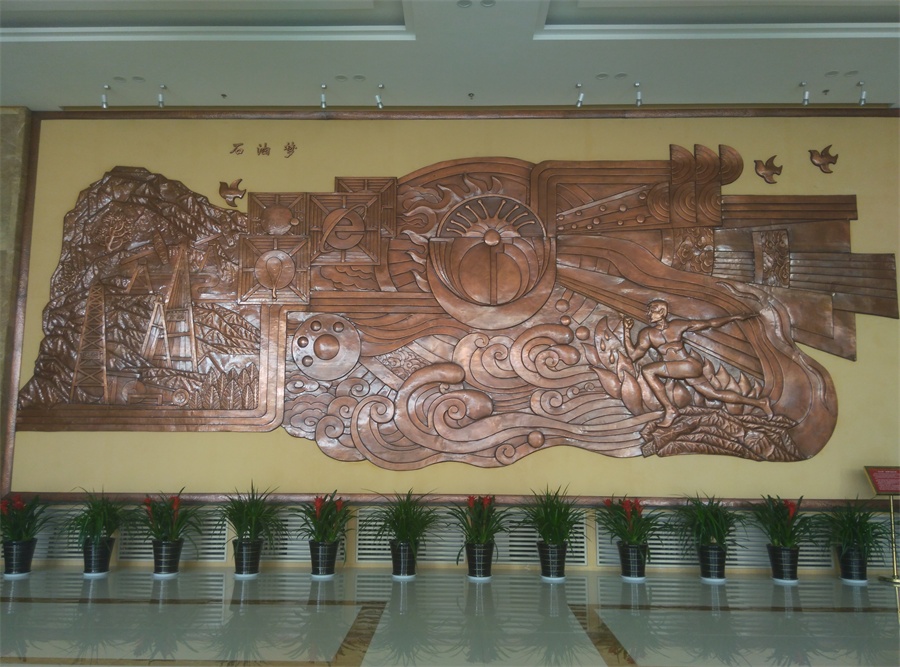 大型鍛銅浮雕——石油夢(mèng),于2015年8月正式落成中國(guó)石油大學(xué)華東校區(qū)(青島市黃島)。該浮雕,由紫銅板手工鍛造成型。寓意了石油人奮發(fā)進(jìn)取的創(chuàng)業(yè)精神及祖國(guó)石油業(yè)的蓬勃發(fā)展。