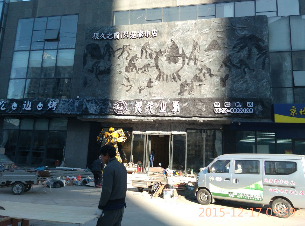 本項(xiàng)目從2015年10月28日開(kāi)始施工,截止2015年12月6日順利竣工。地址位于濱州市黃河六路渤海十八路西200米路北。室內(nèi)假山裝飾部分,分為巖石假山、仿鐘乳石假山、仿溶洞效果三種風(fēng)格?,F(xiàn)為濱州市唯一一家大型原生態(tài)風(fēng)格自助室內(nèi)燒烤城。