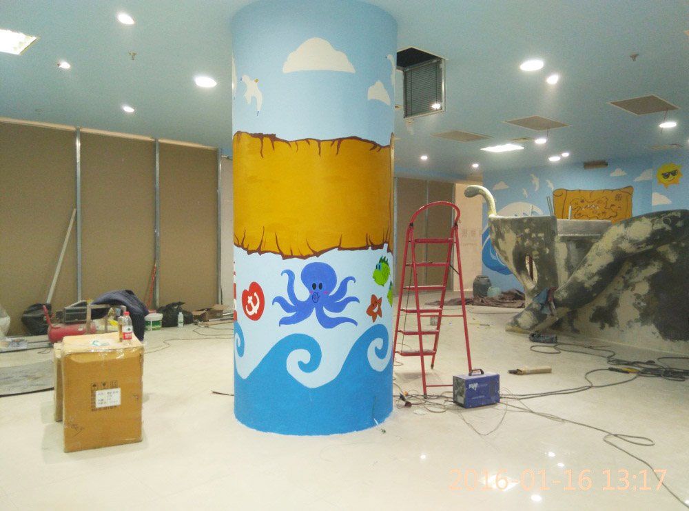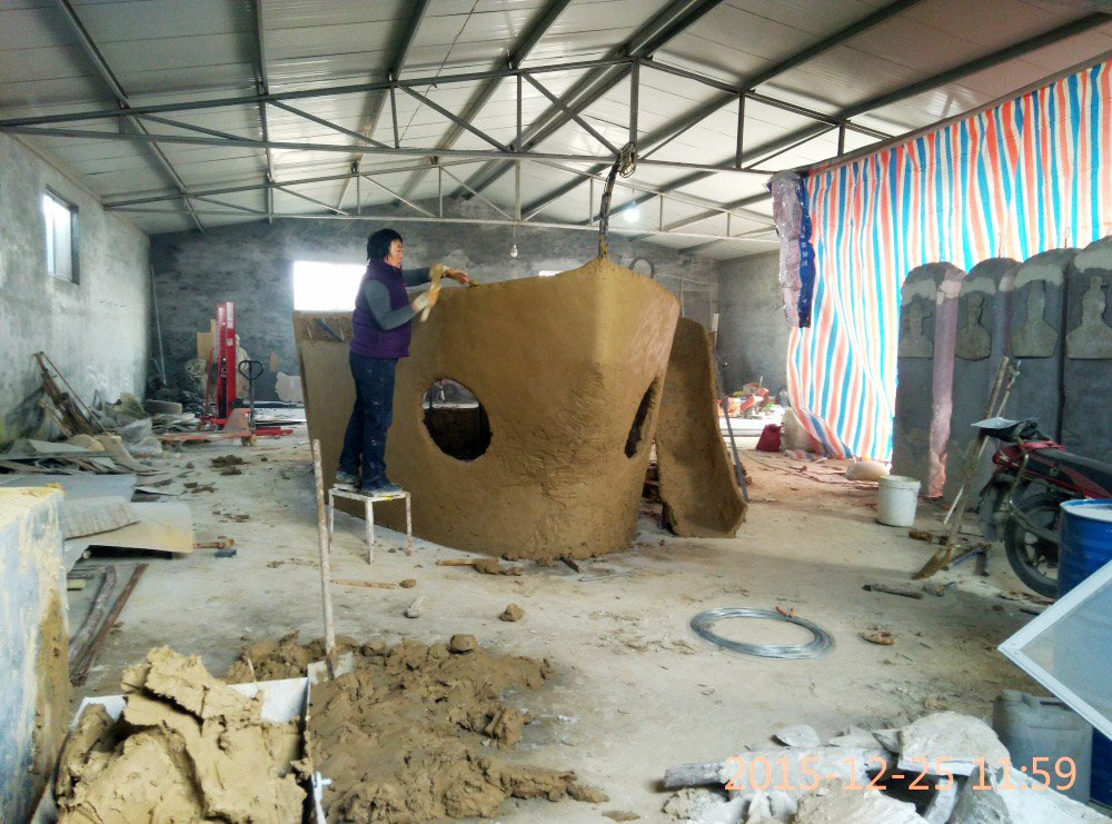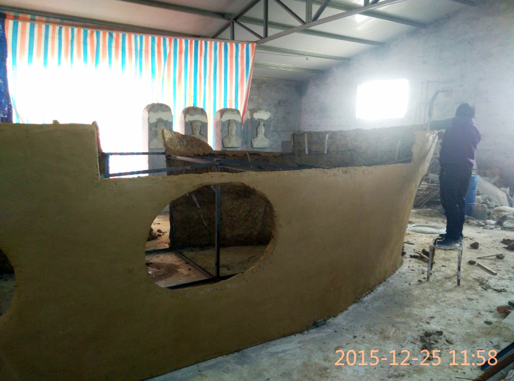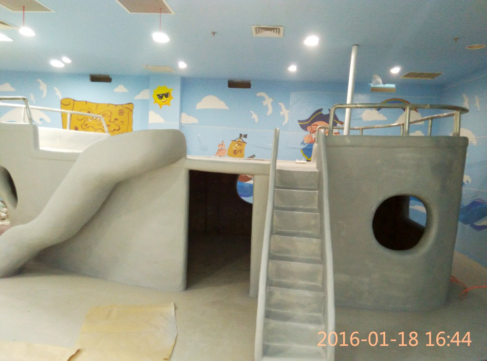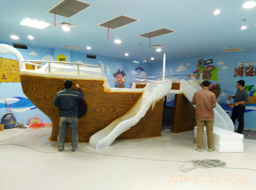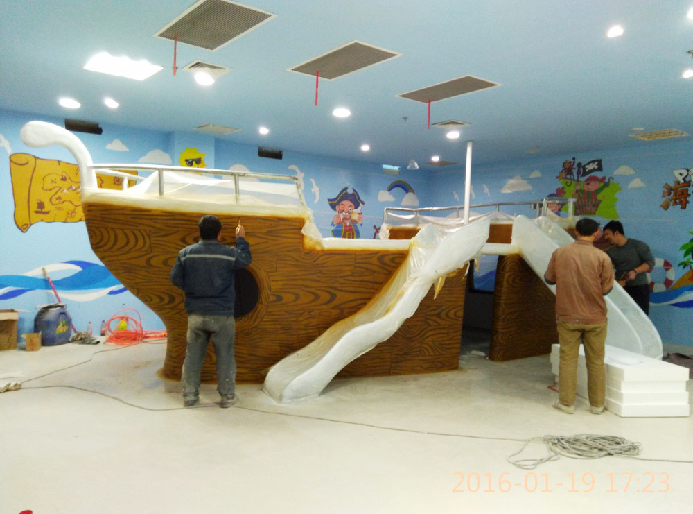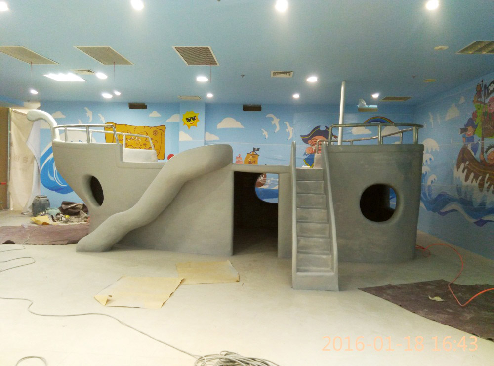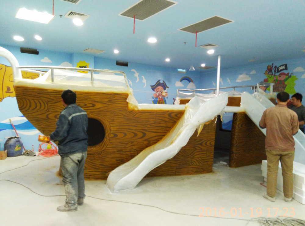 大型玻璃鋼游樂船雕塑竣工。2016年1月15-1月19日安裝于山東省濱州市黃河五路渤海十路銀座商城黃河店四樓。