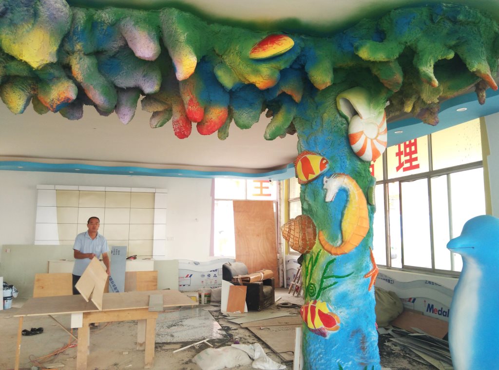 施工內(nèi)容:幼兒園室內(nèi)假樹、水泥假山大門、室內(nèi)房頂星空、水泥蘑菇亭、水泥小鹿雕塑、水泥仿真海底世界雕塑。