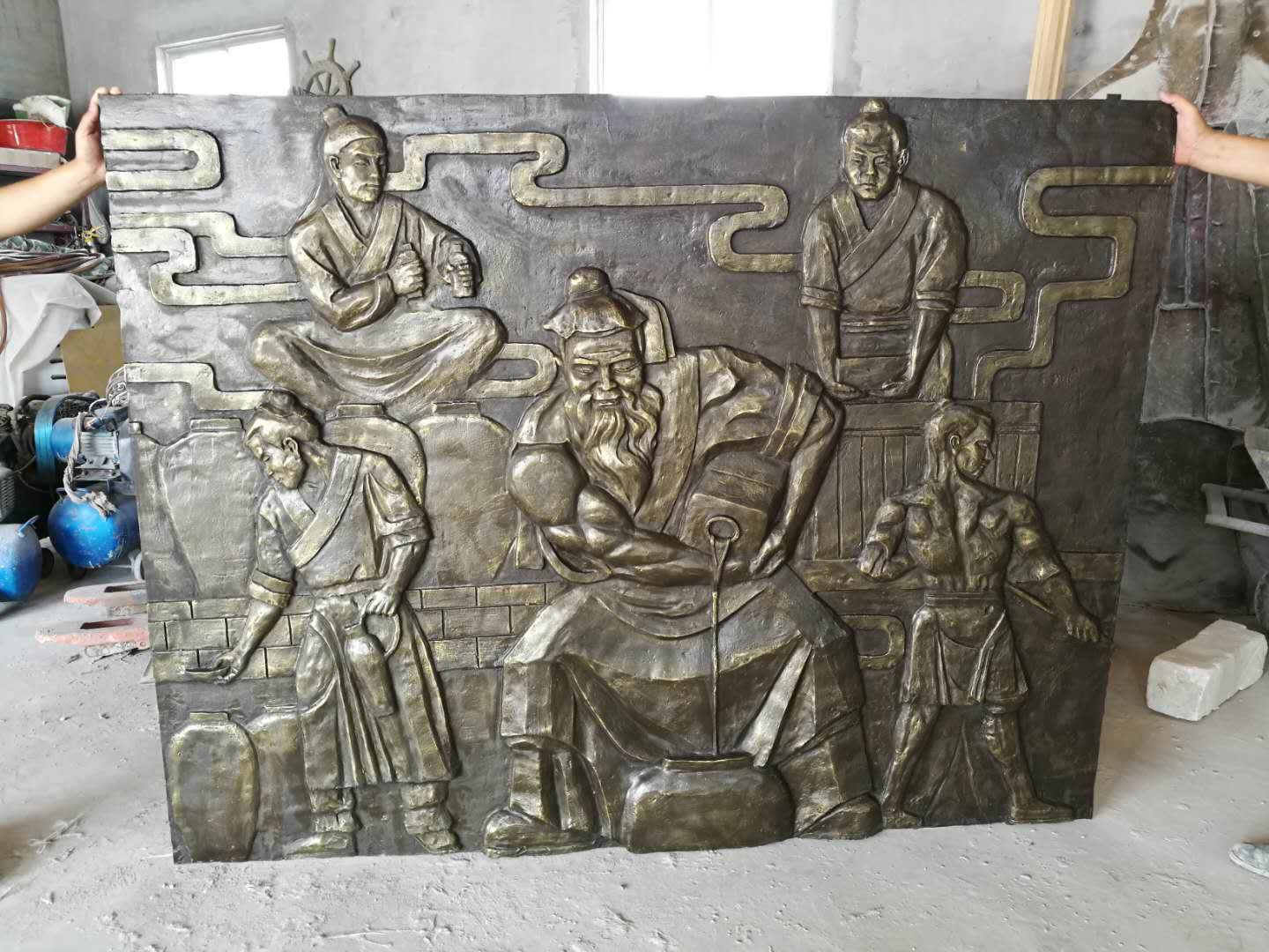 雕塑說明:玻璃鋼材質(zhì),表面仿古銅效果。改雕塑由我們泥塑師根據(jù)甲方意圖,原創(chuàng)設(shè)計(jì),未經(jīng)允許嚴(yán)禁用于商業(yè)用途。