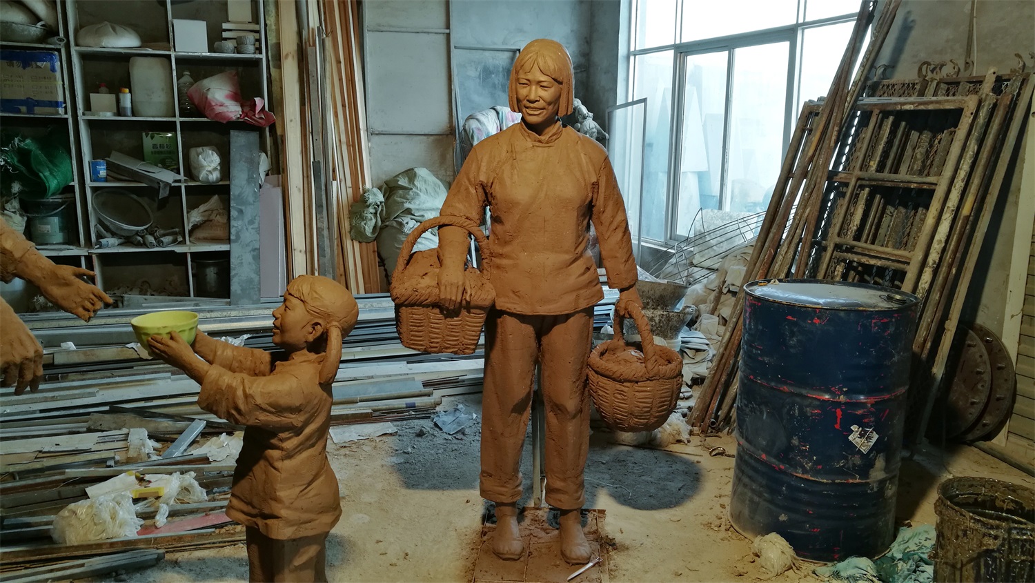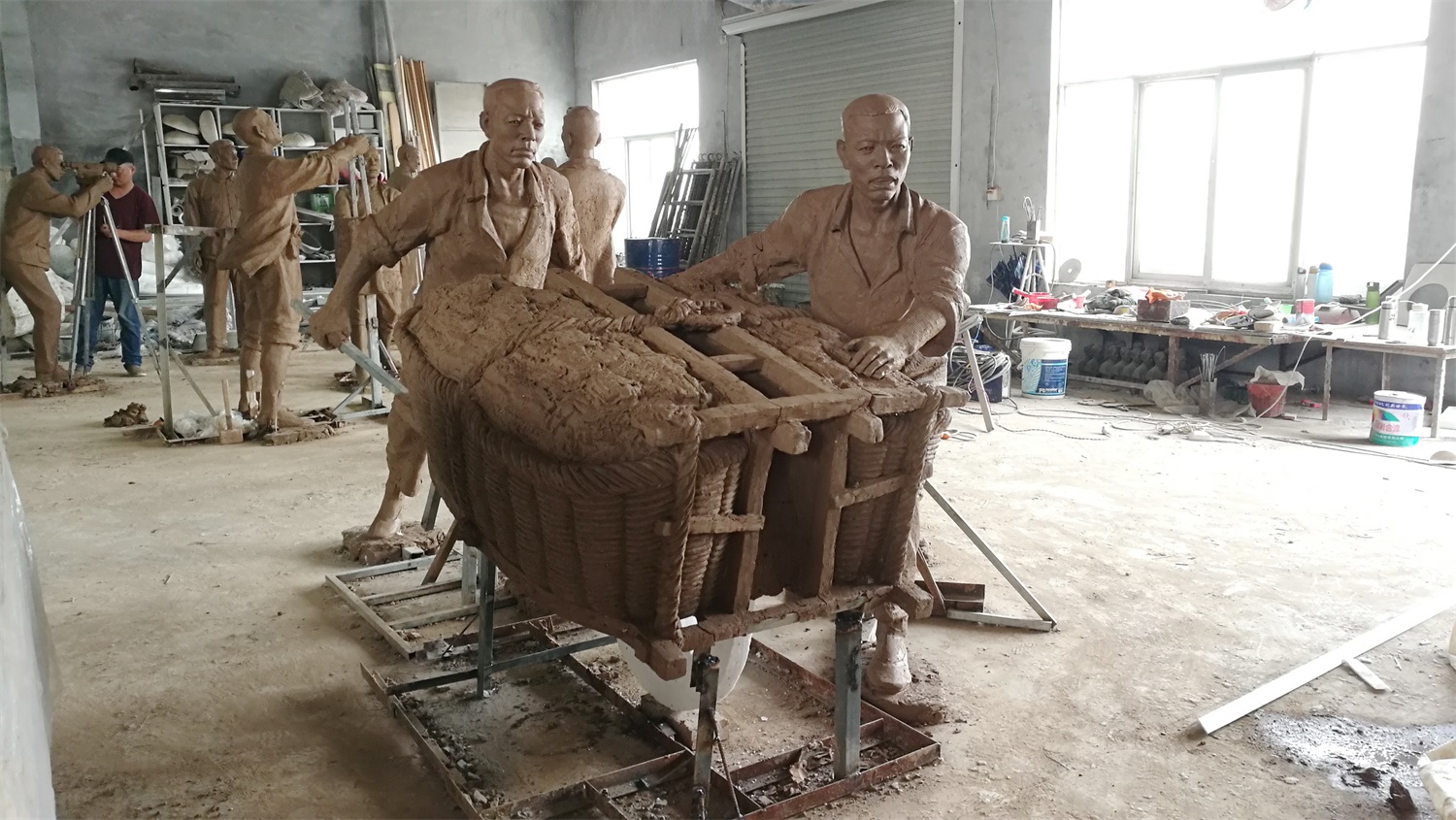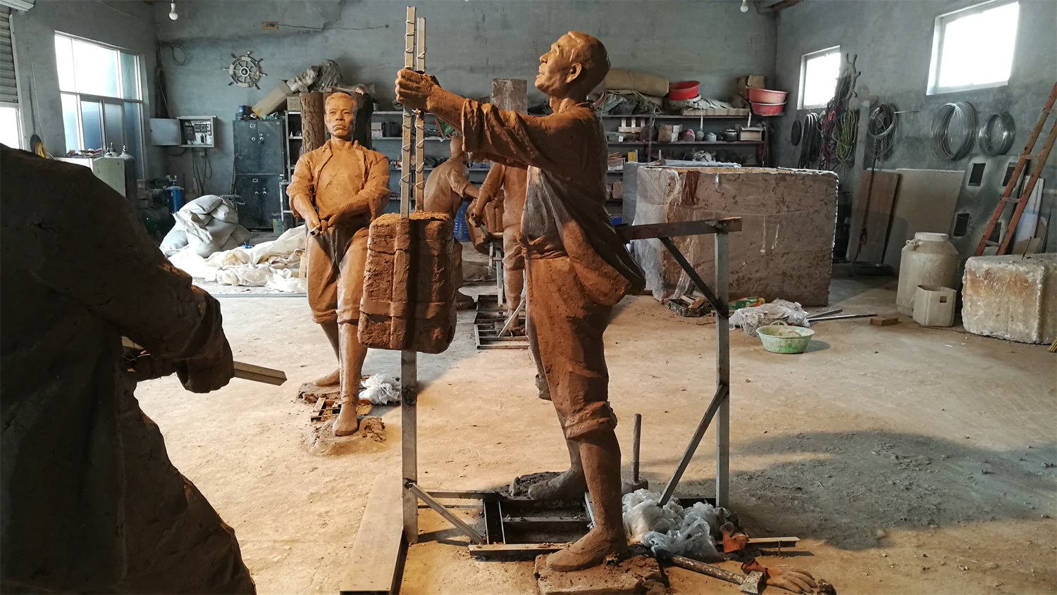簡介:選取修建堤壩中人們熟悉的具有時(shí)代印記的幾個(gè)小場景,再現(xiàn)前輩治理黃河的場景,老輩人有共鳴感,對(duì)年輕人有實(shí)際的教育和激勵(lì)。展現(xiàn)黃河人奮斗歷史繼承黃河精神。泥塑于5月23日完成。