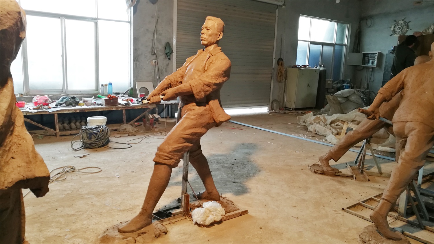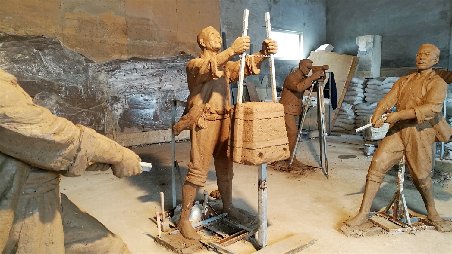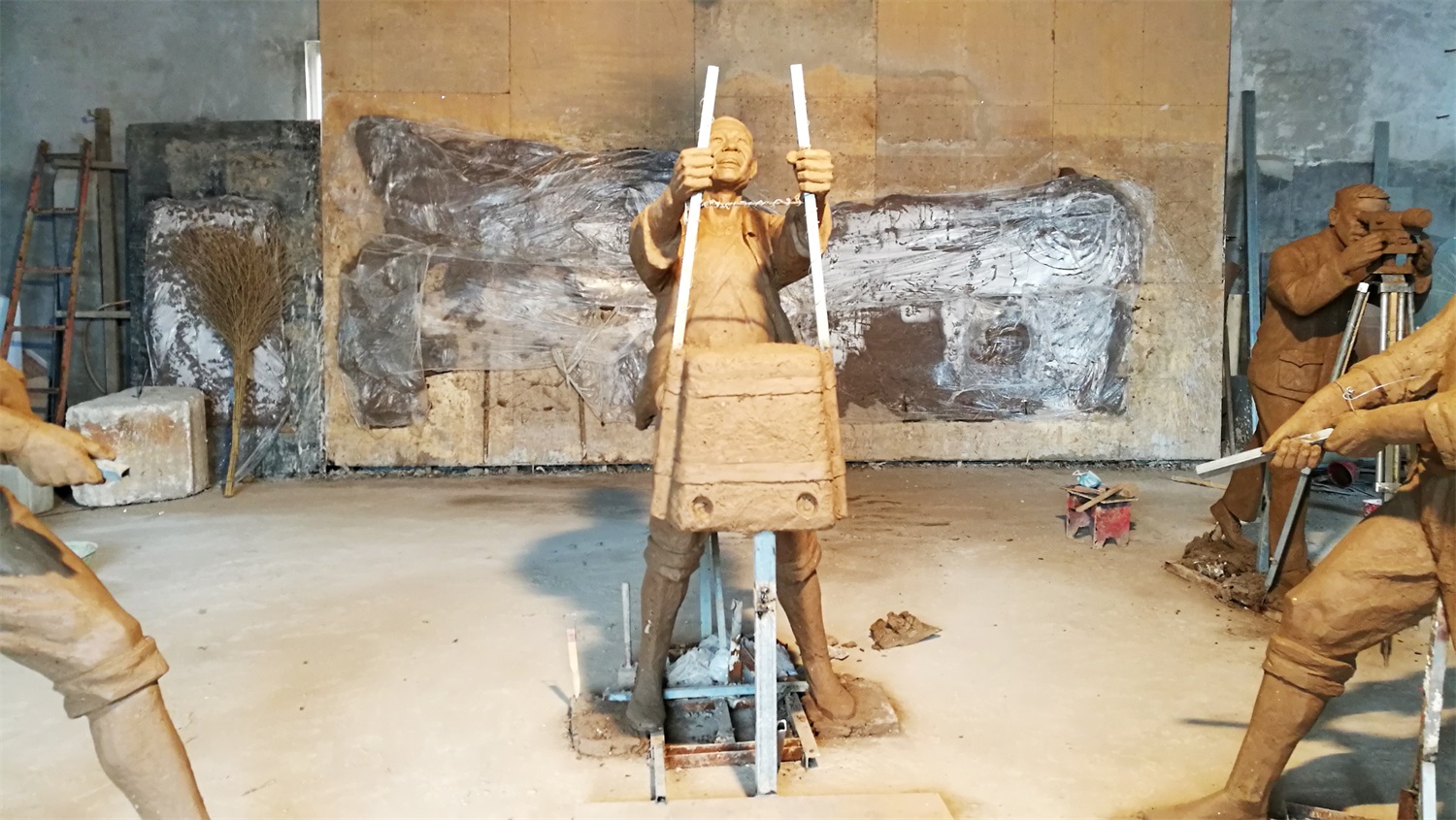 簡介:選取修建堤壩中人們熟悉的具有時(shí)代印記的幾個(gè)小場景,再現(xiàn)前輩治理黃河的場景,老輩人有共鳴感,對(duì)年輕人有實(shí)際的教育和激勵(lì)。展現(xiàn)黃河人奮斗歷史繼承黃河精神。泥塑于5月23日完成。