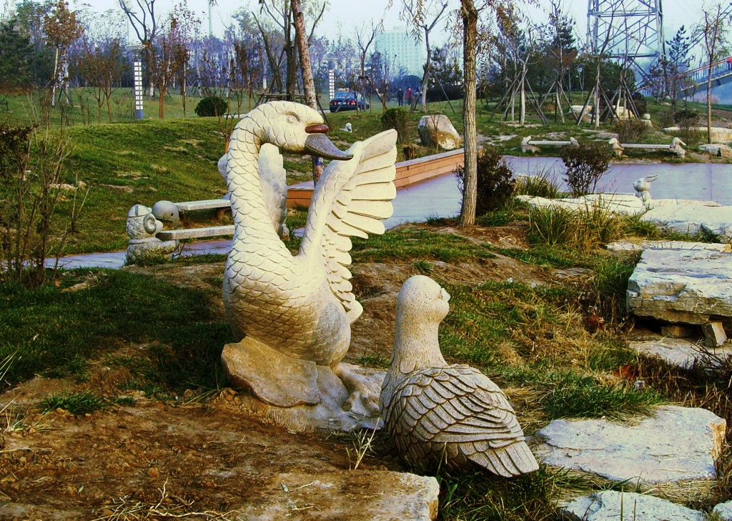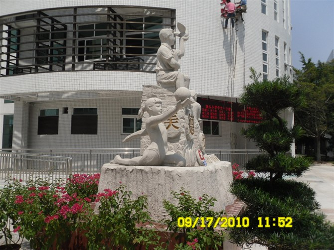 石材雕塑展示。石雕,指用各種可雕、可刻的石頭,創(chuàng)造出具有一定空間的可視、可觸的藝術(shù)形象,借以反映社會生活、表達(dá)藝術(shù)家的審美感受、審美情感、審美理想的藝術(shù)。常用的石材有花崗石、大理石、青石、砂石等。石材質(zhì)量堅硬耐風(fēng)化,是大型紀(jì)念性雕塑的主要材料。