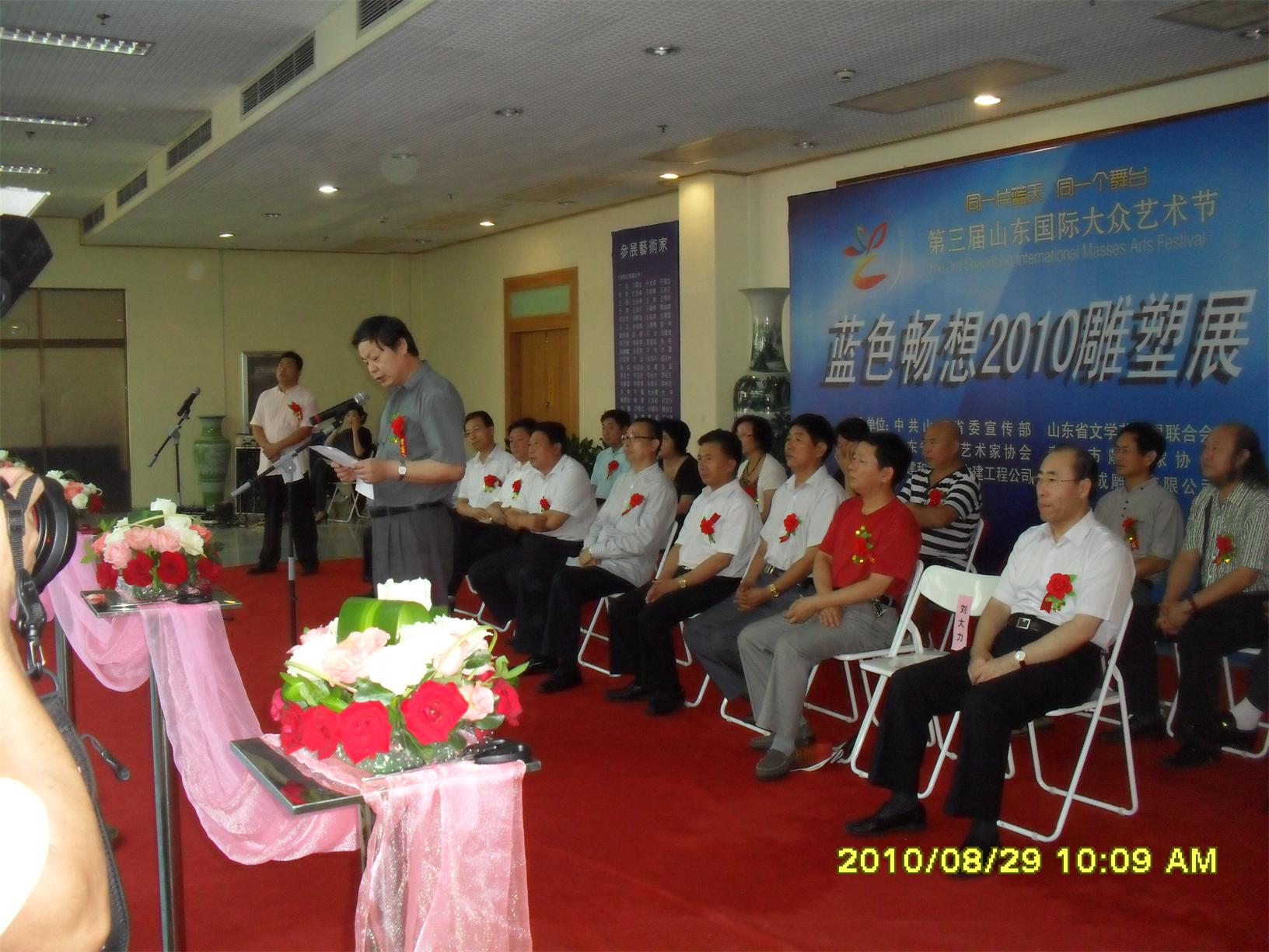 藍(lán)色暢想2010雕塑,2010年8月29日,由中共山東省委宣傳部、山東省文學(xué)藝術(shù)界聯(lián)合會(huì)主辦,山東省雕塑藝術(shù)家協(xié)會(huì)、青島雕塑家協(xié)會(huì)承辦的第三屆山東國際大眾藝術(shù)節(jié)--藍(lán)色暢想2010雕塑展在山東省圖書館隆重開幕。  "藍(lán)色暢想2010雕塑展"吸引了省內(nèi)外大批中青年雕塑家的參與,展覽共收到101位雕塑藝術(shù)家的126件入圍作品。其中省內(nèi)中青年雕塑藝術(shù)家占絕大多數(shù),圍繞"藍(lán)色"主題,堅(jiān)持創(chuàng)造、創(chuàng)新理念,創(chuàng)作了大批優(yōu)秀的雕塑藝術(shù)作品,語言生動(dòng),內(nèi)容多樣,借助不同材質(zhì)和多元化的藝術(shù)風(fēng)格,對藍(lán)色精神進(jìn)行了深入的闡釋。李友生的《海風(fēng)倩影》、王未的《藍(lán)色暢想》、譚信國的《蘋果系列》等作品,均對雕塑藝術(shù)內(nèi)涵進(jìn)行了深入的探索。